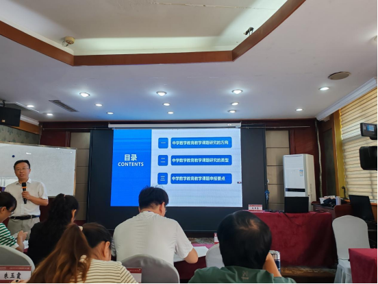 8月30日上午,赵院长以《中学数学教学课题研究的选题、类型及申报》为题,做本次集中培训的最后一场讲座。