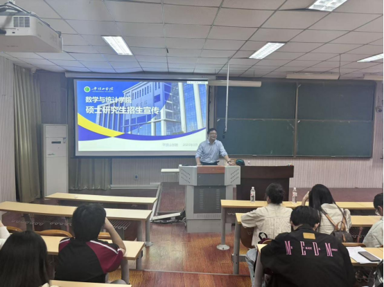 最后,皮磊结合数学与统计专业发展趋势,围绕考研形势分析、目标院校选择策略、备考规划制定三大核心内容展开讲解。他通过对比近年本领域硕士研究生招生数据,深入剖析热门研究方向与就业前景,帮助学子理性认知考研竞争环境、避免盲目备考。同时,他鼓励学子结合自身优势制定个性化备考计划,学院将持续为考研学子提供资源支持与指导服务。