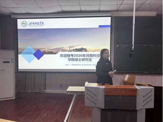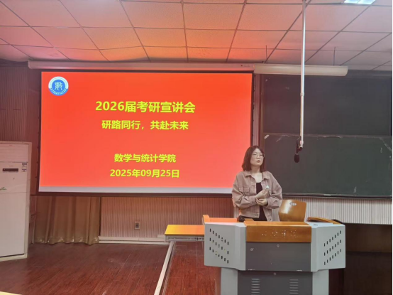 9月25日晚,为帮助2026届学子精准明确考研方向、系统掌握报考关键信息,数学与统计学院在A05-105教室成功举办以“研路同行,共赴未来”为主题的考研宣讲会。学院副院长皮磊、考研指导教师团队负责人魏家瑞,以及110名2026届考研学子参会,河南科技学院数学科学学院张晓老师、平顶山学院数学与统计学院曹欣杰老师受邀作专题宣讲与报考指导,为学子考研之路精准护航。